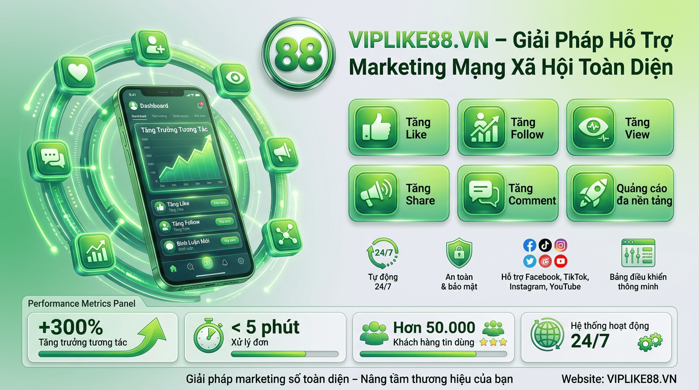 Website VIPLIKE88.VN cung cấp các dịch vụ truyền thông và marketing số. Khi đăng ký tài khoản và sử dụng dịch vụ tại hệ thống, người dùng đồng ý tuân thủ các điều khoản và nội quy được quy định dưới đây.